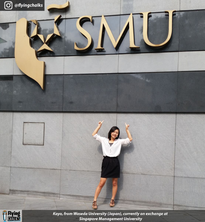 Saya benar-benar menikmati kehidupan universitas saya di SMU. Saya bertemu dengan banyak orang yang memiliki pemikiran berbeda dan sangat menarik untuk mengetahui tentang ide-ide baru itu. Meskipun Singapura adalah negara kecil, saya memiliki banyak kesempatan untuk mengenal orang-orang dari berbagai latar belakang. Berkat mereka, waktu yang saya habiskan di sini sangat istimewa.
