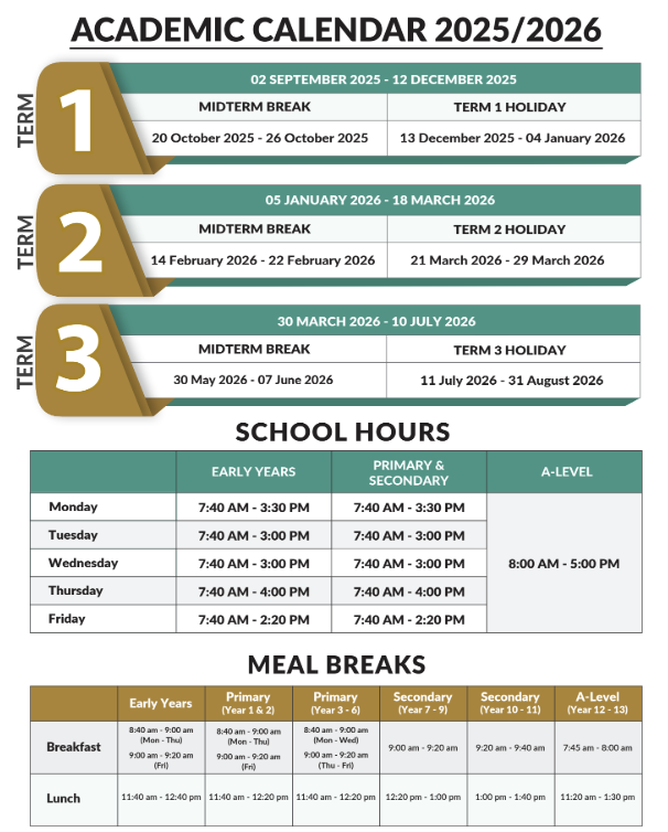 킹슬리 국제학교는 3학기제로 운영하며 9월, 1월, 4월에 새 학기가 시작됩니다.