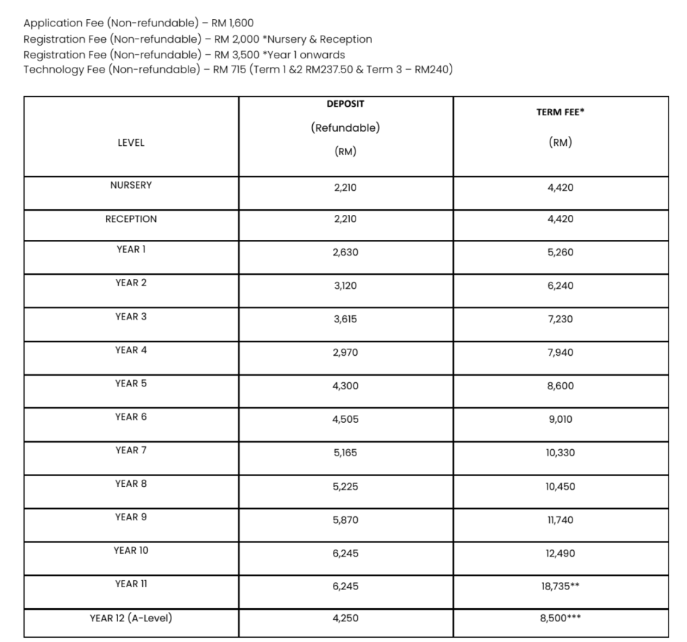 1년에 3학기 제도로 개강은 1월, 4월, 8월에 있습니다. 1년에 한화 약 460만원~1,620만원입니다.(학년별 격차) 가장 마지막 학년에도 천만원 초반대의 학비라 인기가 많은 국제학교입니다. 자세한 학비는 아래 학비 표를 참조해주시기 바랍니다.