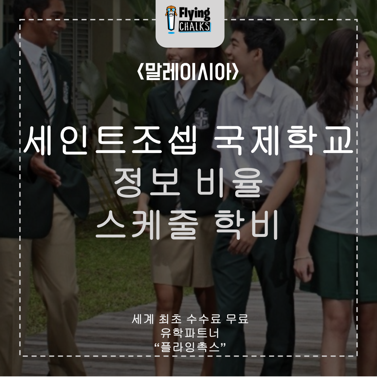 입학 상담, 수속, 입국 절차, 현지 케어까지 모두 무료로 제공해 드리기 때문에 동남아 조기유학 또는 대학유학을 생각하신다면 자신 있게 플라잉촉스를 추천드립니다:)