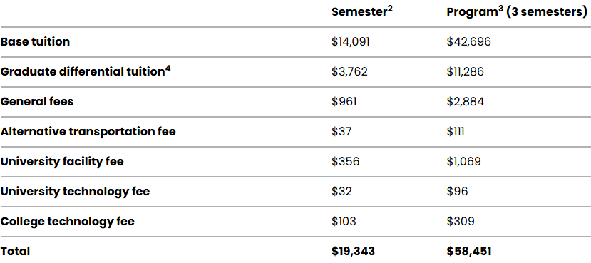 한 학기당 학비를 포함해 예상 비용은 약 3,100만원으로, 3학기짜리 석사 프로그램을 전부 마친다면 약 9,400만원이 예상됩니다.