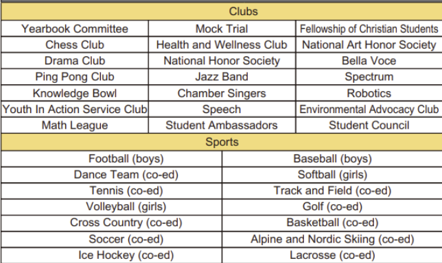 학생들에게 다양한 옵션을 제공하고 있으며 23개의 스포츠 활동 과 40개의 동아리부 활동이 있습니다
