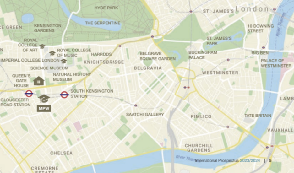 MPW 런던은 수도의 가장 고급스럽고 부유한 지역 중 하나인 쵠 1인 사우스 켄징턴에 위치하고 있습니다. MPW 런던은 하이드 파크, 임페리얼 대학 및 과학 박물관, 천연사 박물관, 빅토리아 앤 앨버트 박물관을 비롯한 세계적으로 유명한 박물관 몇 분 도보 거리에 위치하고 있습니다.